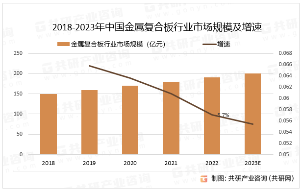金属复合板制造的产品如建筑业、汽车制造业★、电子产业等,金属复合板作为材料被应用于不同领域的产品中,满足不同产业的需求,2022年中国金属复合板行业市场规模同比增长5.7%。